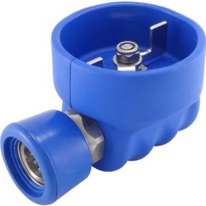 Stainless protected ball valve, 1/2″ female x st.st. coupler with protection, blue