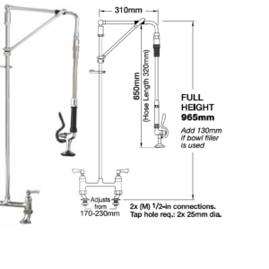 Deck Mounted Swingarm ‘Hangman’ Pre-Rinse Spray. Single Pedestal and Twin (mixed) Water Feed. – Short Model 680mm