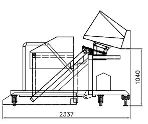 - Designed for unloading of 825 litre container in one or a line of tumblers with equal filling height. Safety and reliable mobility through a rail supporting system. The special chute can be placed with 230 mm into the tumbler so that no row material or liquid runs out. If required our SL can unload 200 and 300 l buggies. For the different filling-in height, this swing loader can be equipped with another chute. Pneumatic execution.