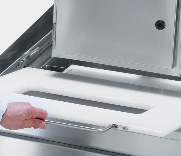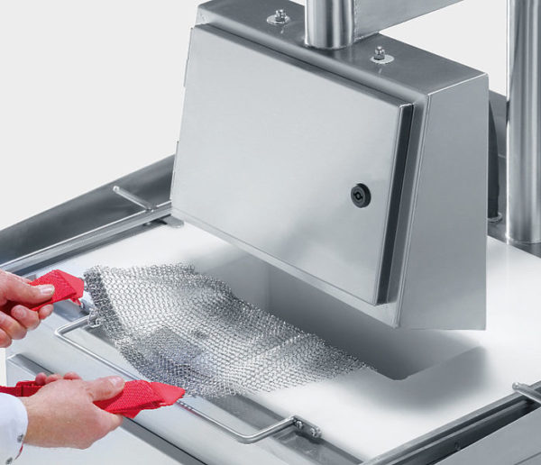 The Apron Cleaning Machine SSR is used to thoroughly clean and disinfect steel aprons, using an integrated high pressure pump with a performance of 100 bar/water pressure.
