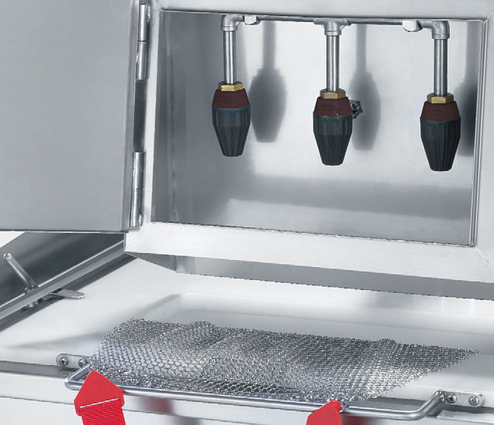 This reliably cleans and disinfects even extremely dirty steel aprons in max. 15 seconds.