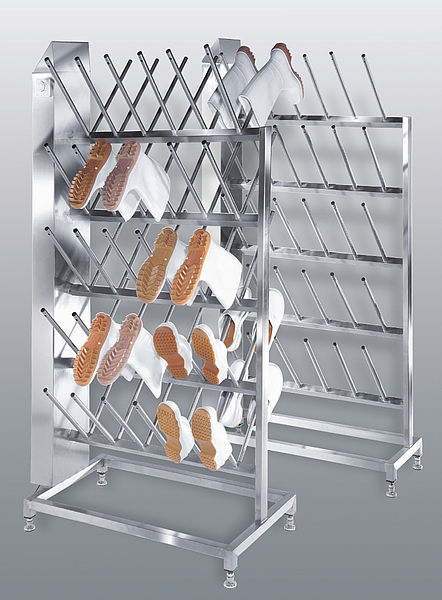 The temperature of the air blown into the suspended boots is adjusted with a thermostat.
