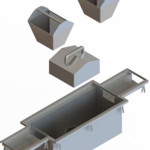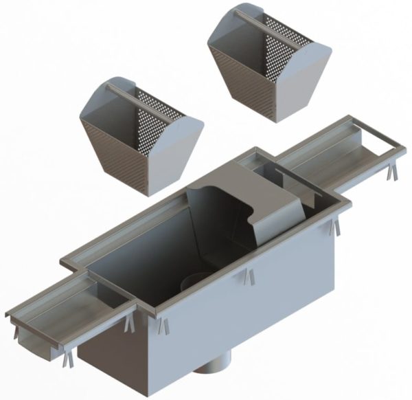 - Introducing our Central Bottom Drain Outlet with Hinged Trap suitable for all industries. Manufactured from 304 or 316 Grade Stainless Steel these drain outlets are fully welded and manufactured in standard sizes and positioned along the length of a drain channel in a central position or at the end of the drain channel, equipped with hinged trap to provide rodding access. Complete with two removeable baskets.