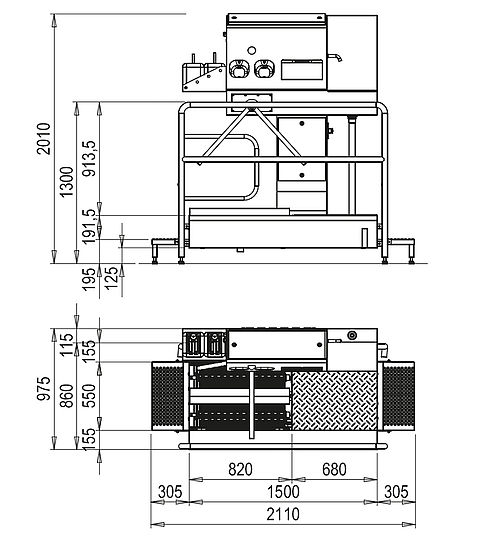 - The horizontally mounted rotating brushes covered by a fold-out floor grating made of stainless steel ensure the fast cleaning of the soles. The Brushes can be adjusted to run from 1 – 10 seconds.