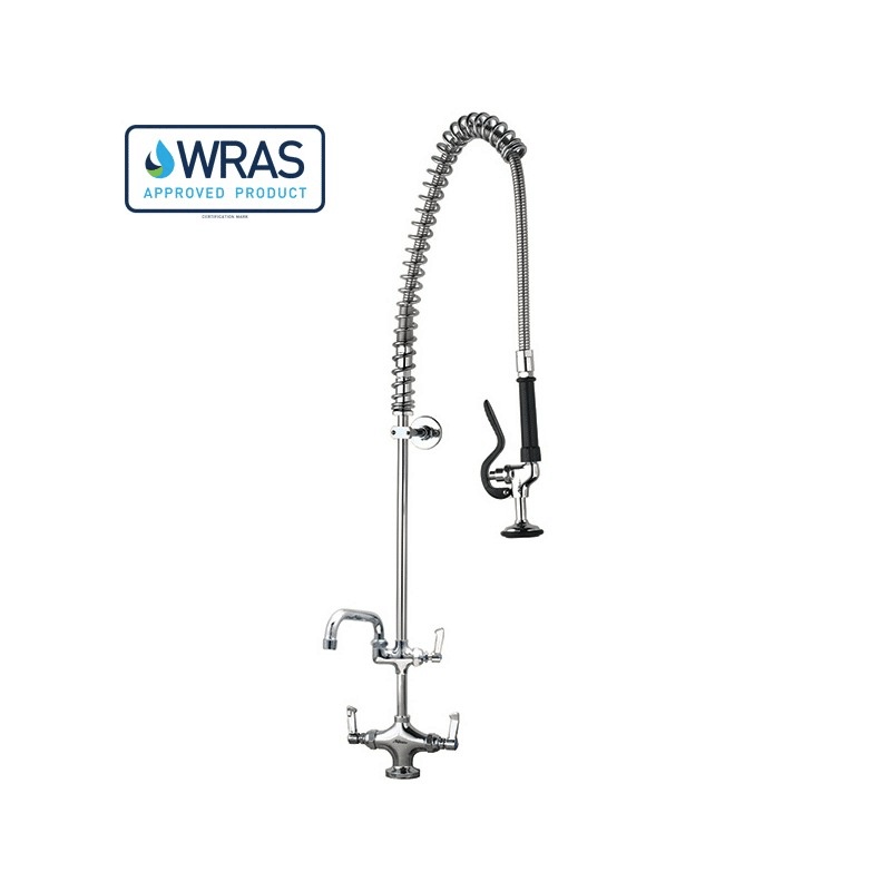 DECK mounted Pre-Rinse Spray, AJPR20 base, Single Pedestal, Twin Water (Mixed) Feed, Monoblock, with LEVER controls, STANDARD style, STANDARD spray gun, No bowl filling tap.