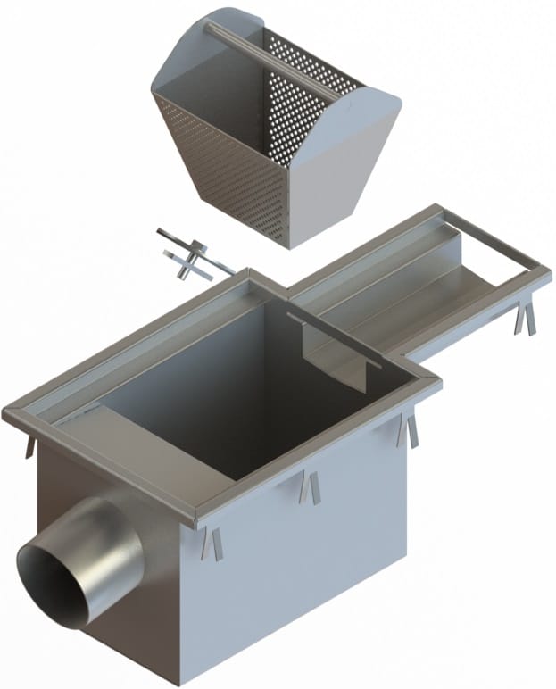 Manufactured from 304 or 316 Grade Stainless Steel these drain outlets are fully welded and manufactured in standard sizes and positioned along the length of a drain channel, equipped with rodding eye access.