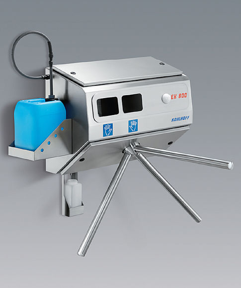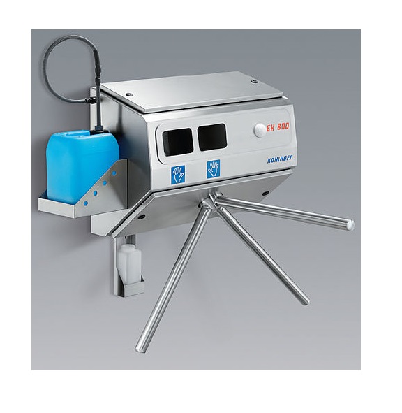 The Entry Control Turnstile EK 800 guarantees a safe disinfection of hands, through the use of a tamper-proof two hand disinfection in connection with a – after complete hand disinfection unlocked – turnstile lock.