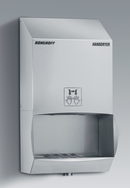 The high-speed hand dryer HANDDRYER-1-A has been especially developed for dry rooms, such as social rooms in the food industry, communal catering and other rooms not constantly exposed to high humidity.