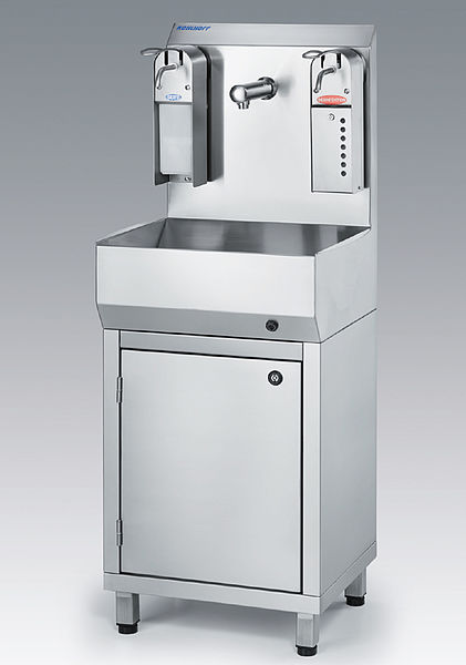 Stainless Steel Kohlhoff Freestanding Handwash sinks are designed for use in Hygiene Conscious Environments with low maintenance and on going costs.