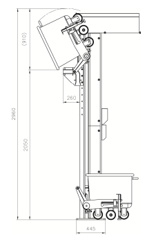 - The mobile lifter tippers are designed as column lifters with a lifting fork which can be positioned to a left hand or right hand execution.