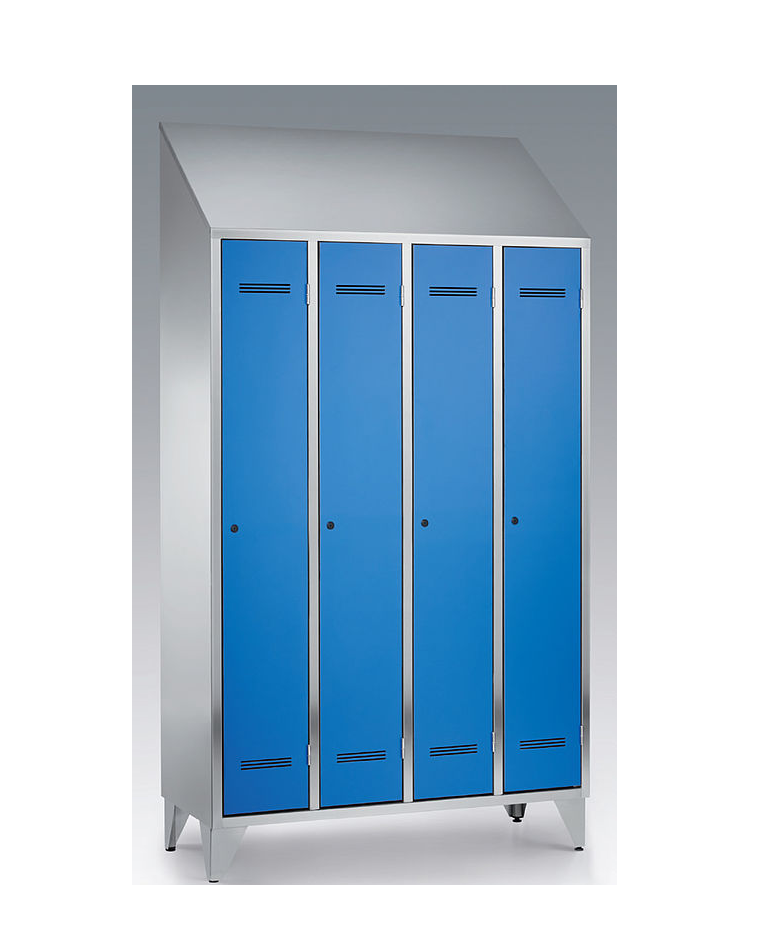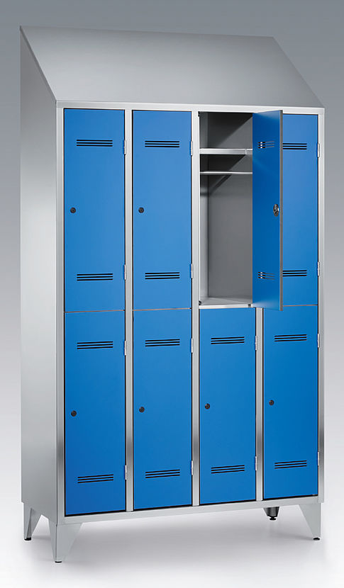 The danger of the doors being pried open in the corners is hereby reduced to a minimum. The locker is available in 1 or 2 storey form.