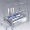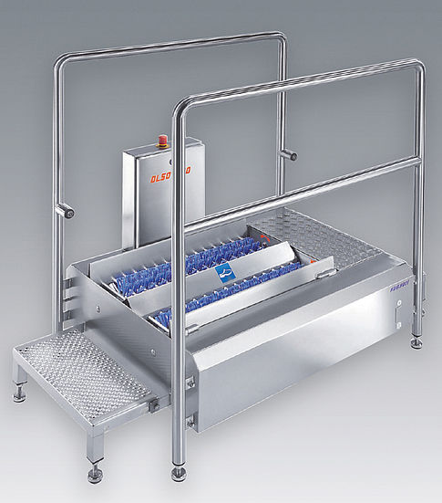 - The horizontally mounted rotating brushes covered by a fold-out floor grating made of stainless steel ensure the fast cleaning of the soles. The Brushes can be adjusted to run from 1 – 10 seconds.