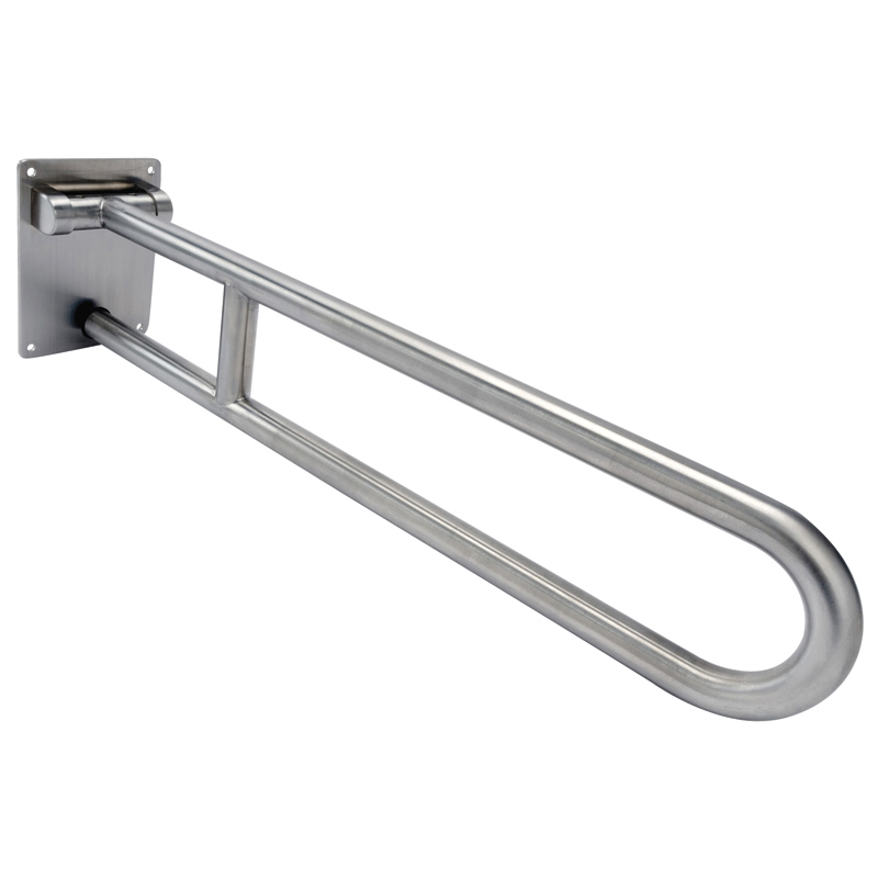 BS8300:2009 – ‘A hinged drop-down support rail, located on the open side … or on both sides… should be fixed with its centre line 320 mm from the centre line of the WC and should extend 50 mm to 100 mm beyond the front of the WC’.