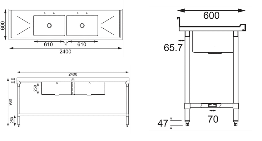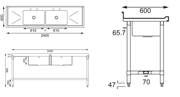 Stainless Double Sink with Double Drainer – Galv Undershelf