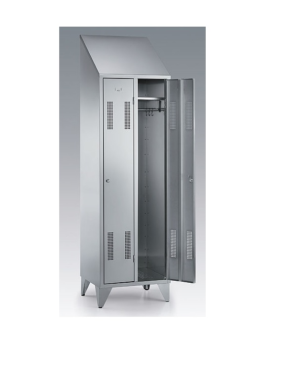 - These stainless lockers come complete with a small compartment for hats and helmets and a rail for hanging garments.
