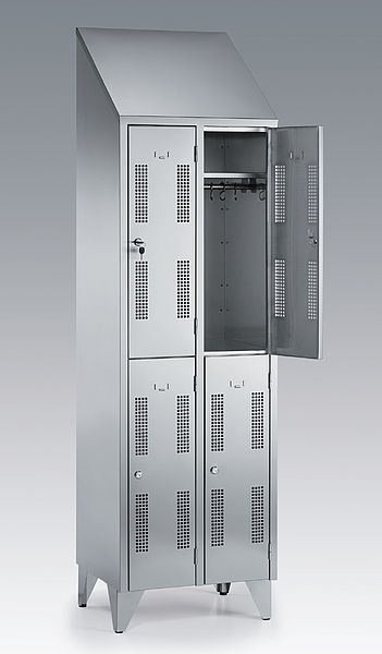 - The locker can, when closed, be secured with a padlock. Holes in the doors and the bottom of the locker ensure optimal air circulation.