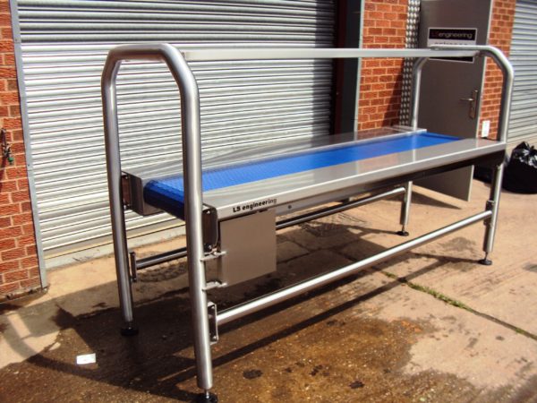 The Stainless Packing station Conveyor can be made to be mounted on castors to be mobile or static.