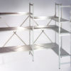 The shelves on the stainless shelving system are adjustable in height with a pitch available at 165mm variants. Depending on the height and model, the uprights are stabilised with 2 or 3 traversal flat profiles.