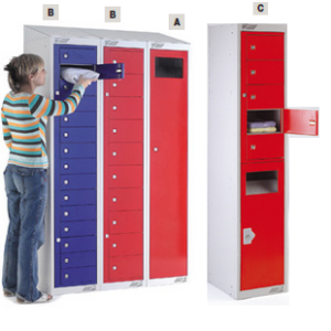 Dispensers have individually lockable compartments, master door opens complete front for replenishing.