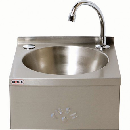 Stainless steel (304) basin. Complete with basin, drain outlet. With push-front panel for hands-free use Knee-Operated, Hands-Free mechanical operation, Includes knee-valve, pre-mixer valve, swivel spout, water hose tap hole stopper.
