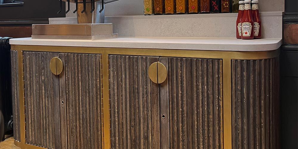Created for a Nandos Restaurant – A Drinks/Storage Unit Finished in Aged Brass